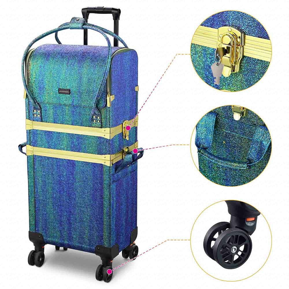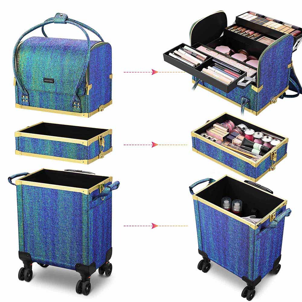 - Large Capacity: Top case with 4 retractable trays and spacious compartment; bottom section large enough for makeup tools and bottles