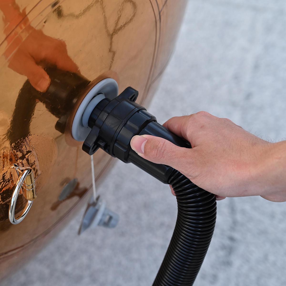 - Two nozzles are included to ensure a secure fit for various items, from inflatable mirror balls and paddle boards to smaller pools and tents