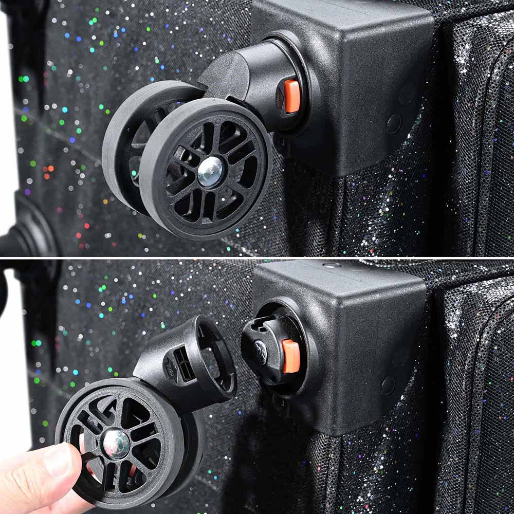 - 4 pcs removable 360-degree swivel wheels, a telescopic handle & a carry handle for smooth to move & easy to transport.