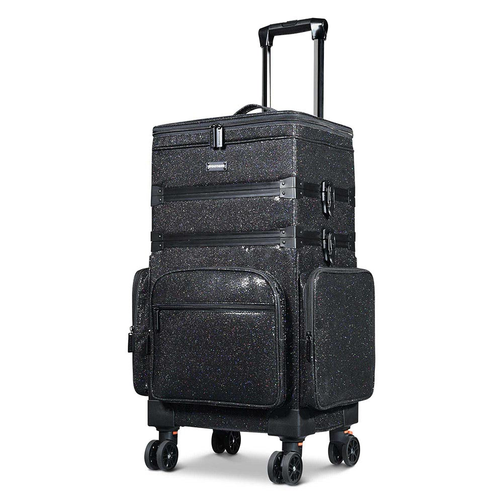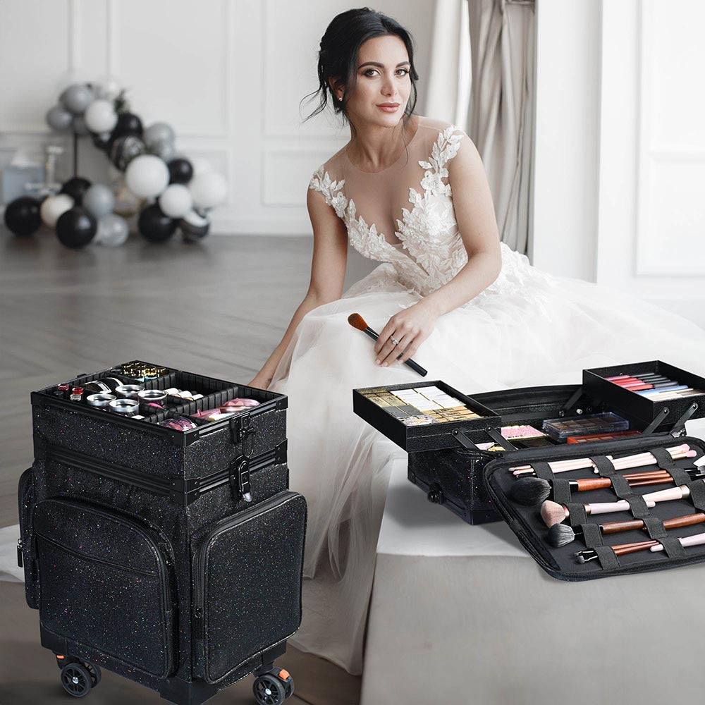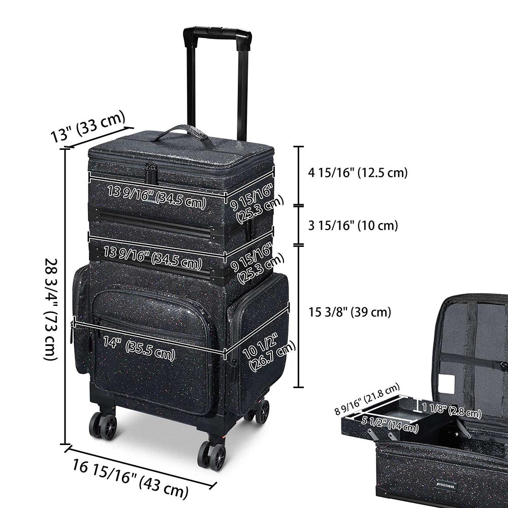 Byootique 3in1 Soft Sided Rolling Cosmetic Case is the perfect companion for any makeup artist on the go! Combines an eye-catching look with multiple combinable storage spaces to ensure your cosmetics are organized & easily accessible. 4 pcs 360-degree swivel wheels make it easy to move & transport when you're traveling!