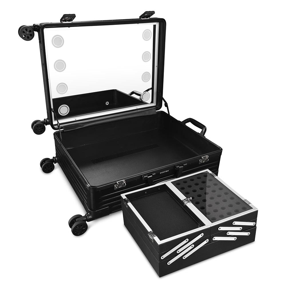 Designed with convenience and style, Byootique's makeup trolley case seamlessly integrates functionality with a sleek and sophisticated aesthetic.