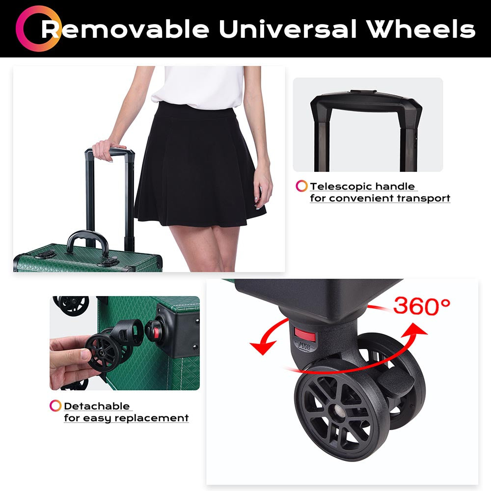 - 4pcs 360° swivel wheels for smooth movement; detachable design for easy replacement if broken/damaged; Telescopic handle for easy carrying.